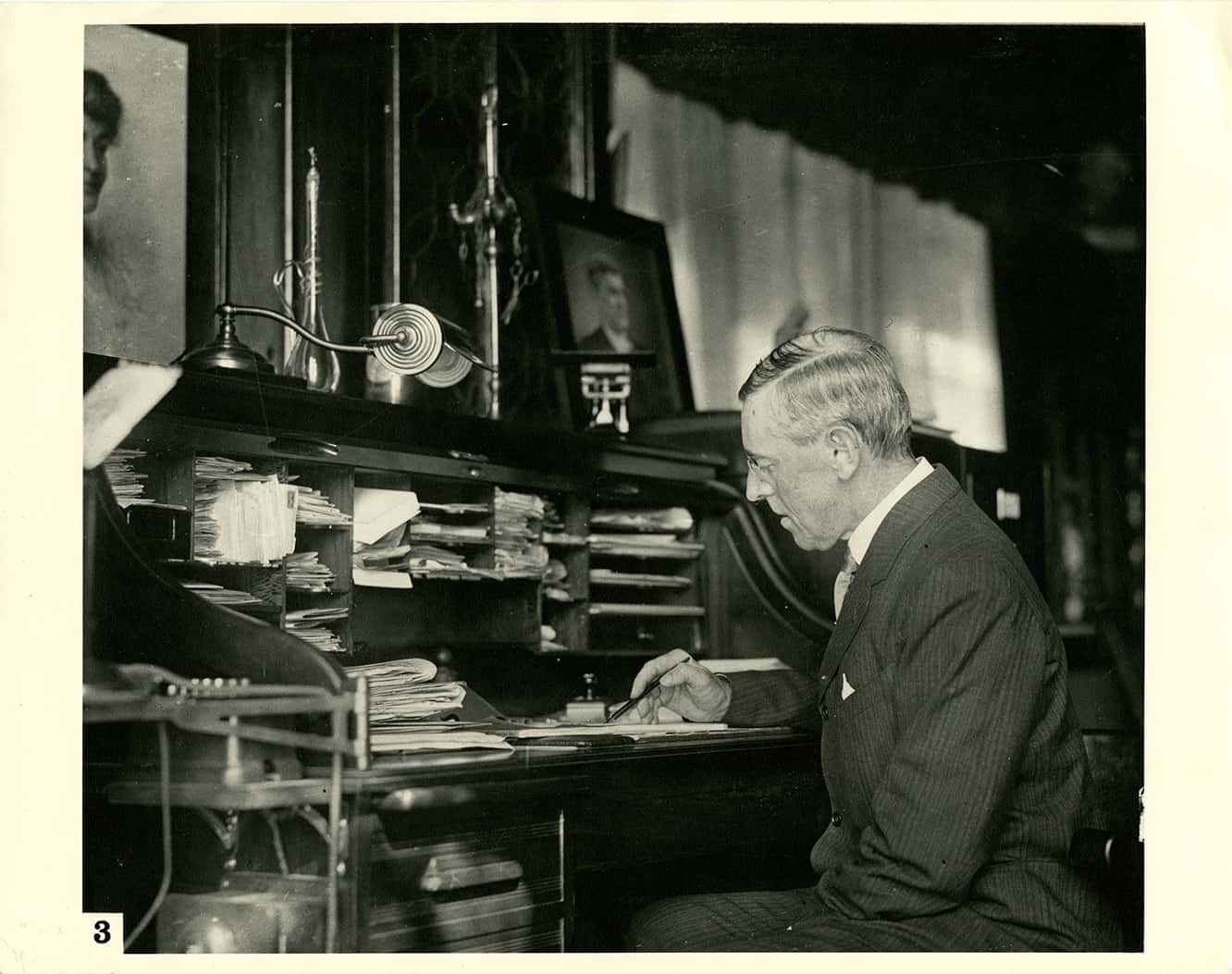 Reproduction photograph of Wilson sitting at a desk, 1913-1921