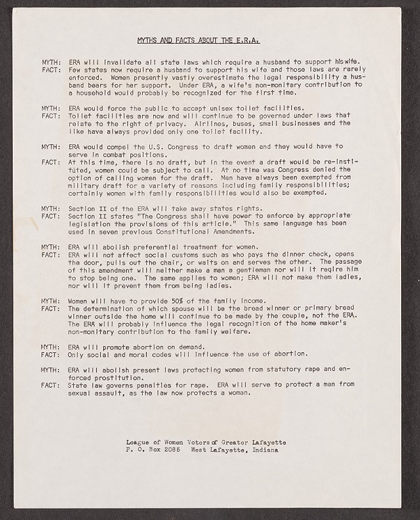 "Myths and facts about the E.R.A.", undated