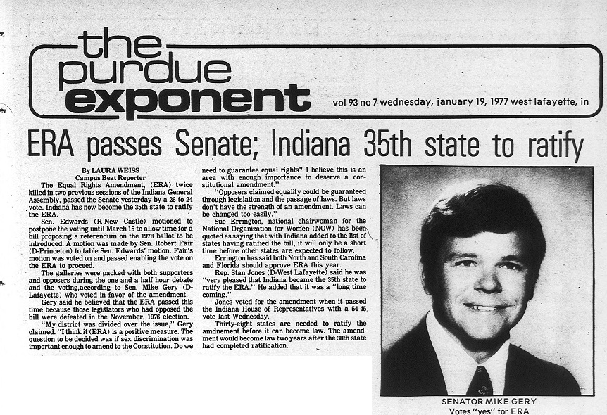 "ERA passes Senate; Indiana 35th state to ratify", January 19, 1977