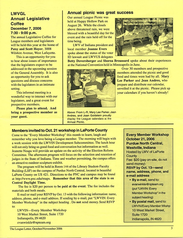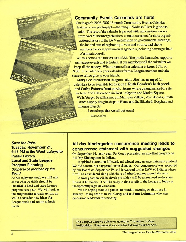 League of Women Voters of Greater Lafayette records, MSP 55, Box 4, Folder 15