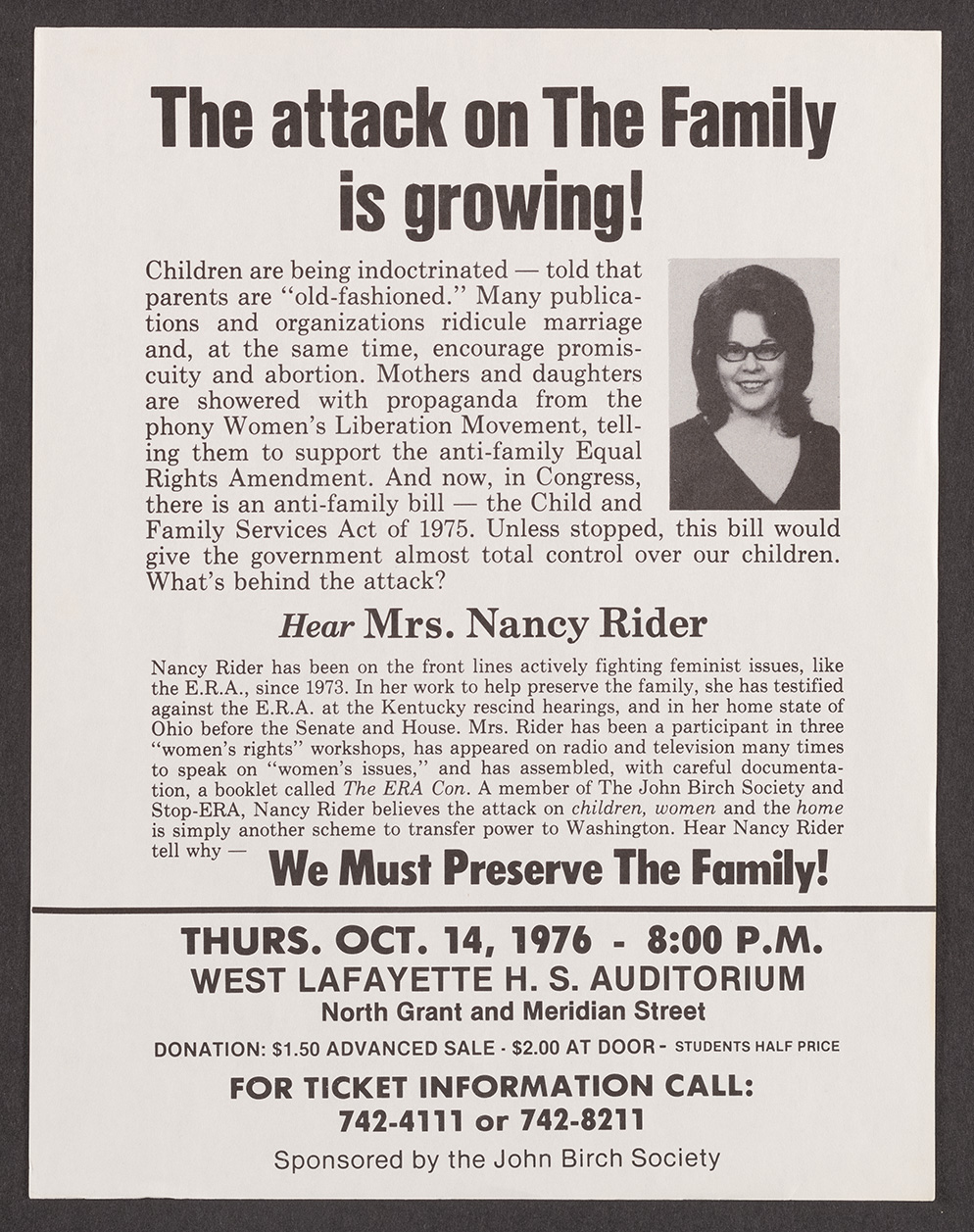 "The attack on the family is growing", ca. 1976