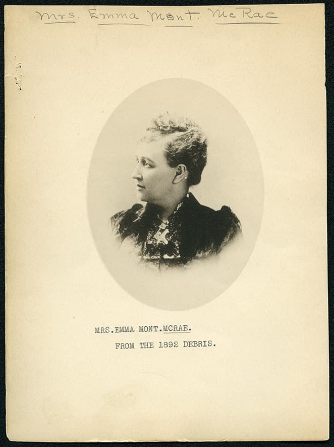 In 1880, Emma Montgomery McRae, who later served as a professor of English literature