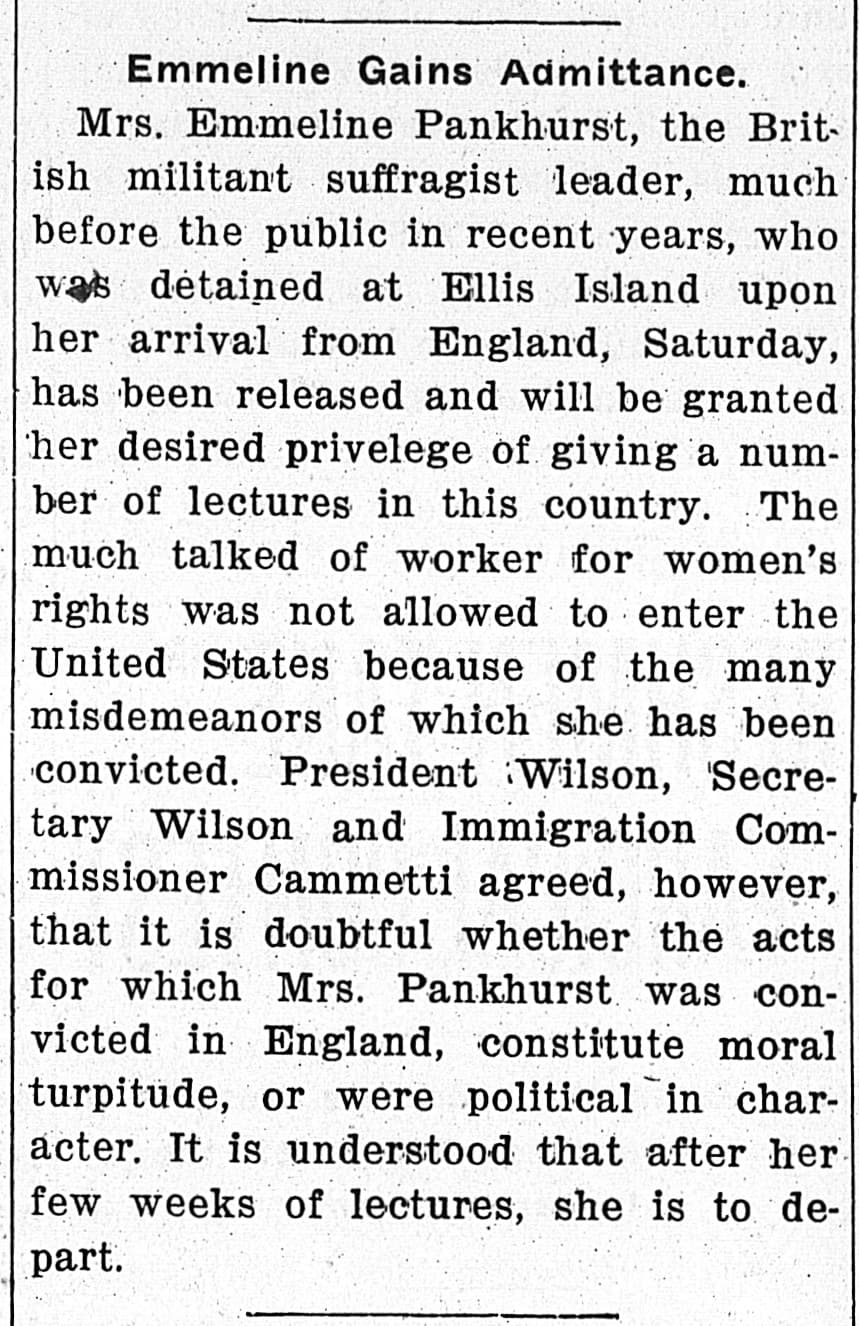 the Purdue Exponent regarding Emmeline Pankhurst, a militant British suffragist, and President Wilson