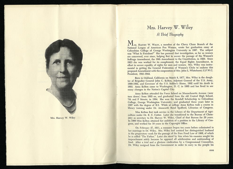"Mrs. Harvey W. Wiley: A brief biography", 1963
